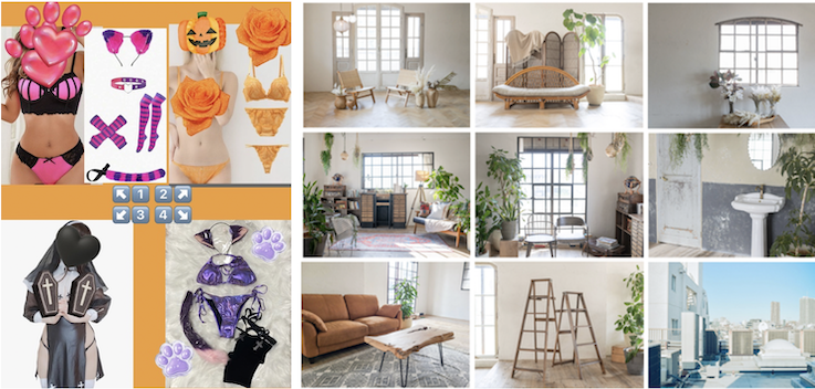 基本衣装 1.チェシャ猫(ピンク) 2.ランジェリー(ショーツは写真真ん中(深め)) 3.シスター(聖母系偽乳ニプレス見えます) 4.チェシャ猫(紫)